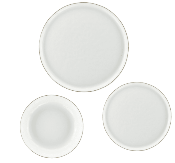 Set 18 piatti in porcellana Onix White Stone Gold Line